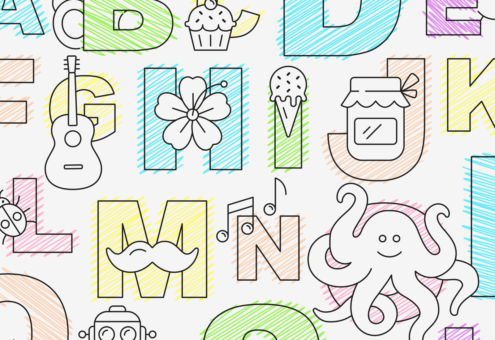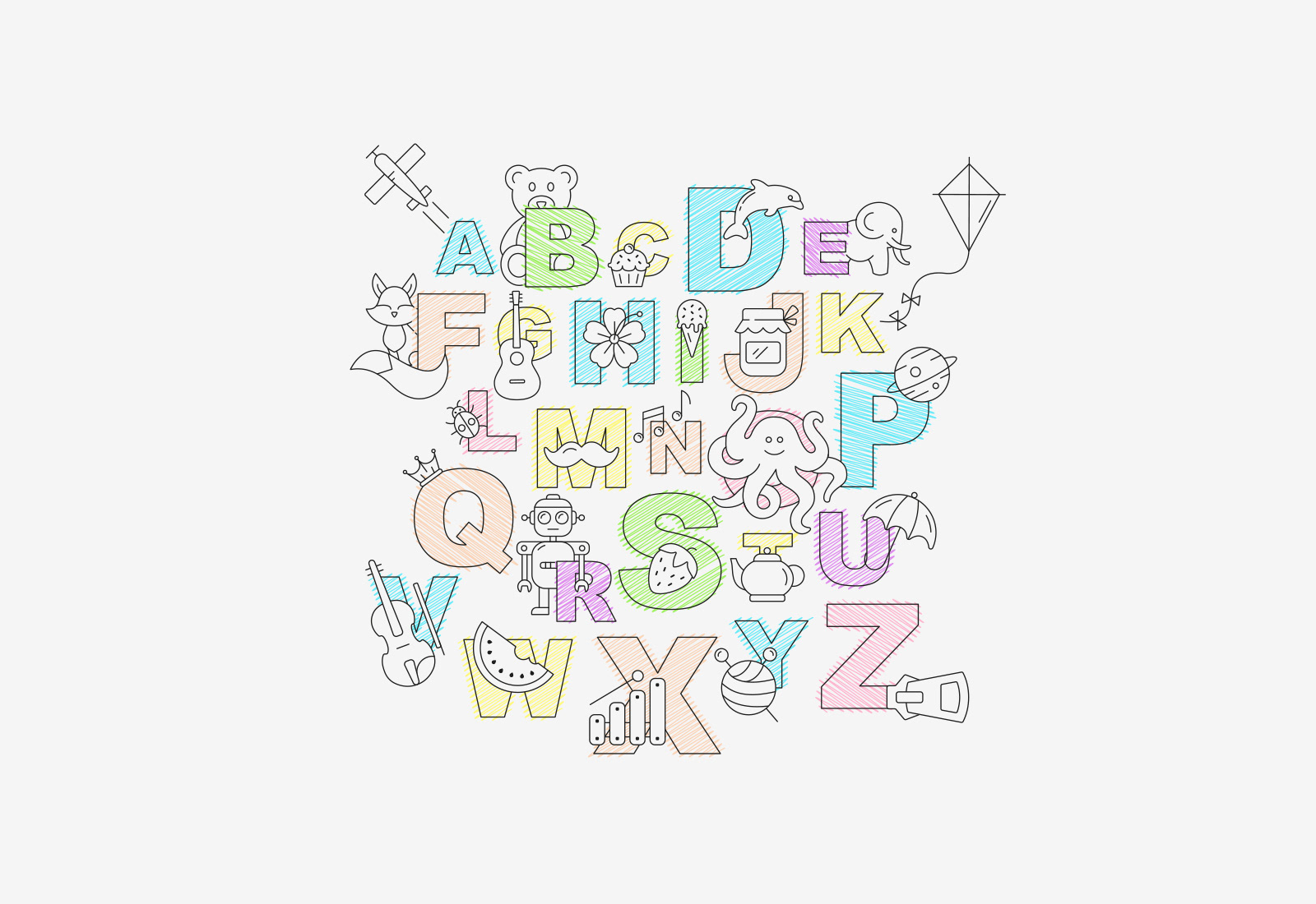 Alphabet poster created for my newborn niece. I included elements that are significant in our family.